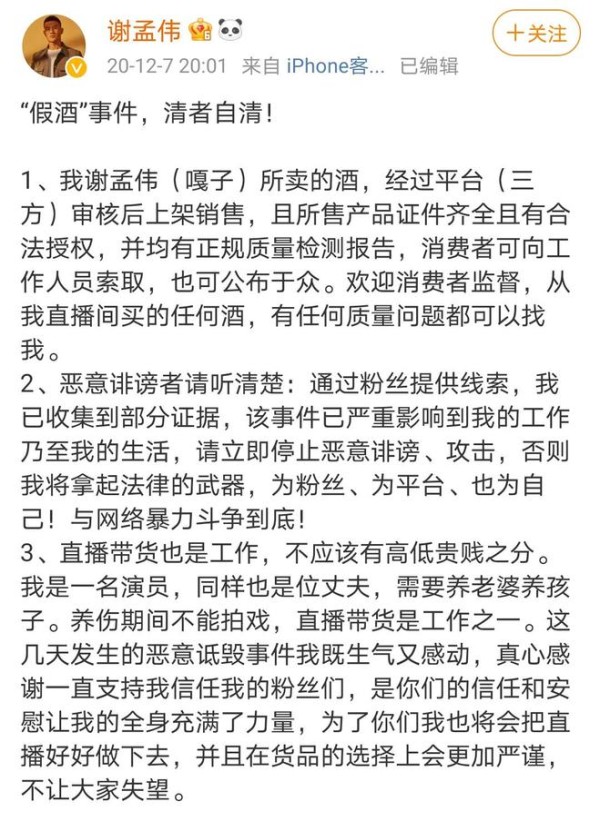 直播带货确实是他的另一份工作,也正如他曾强调的那样,“直播带货也是工作,不应该有高低贵贱之分”。