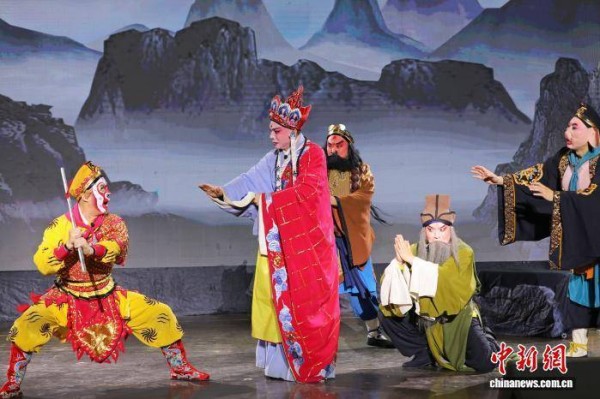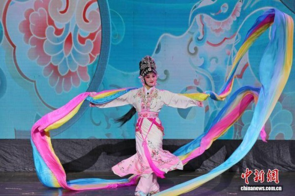 当地时间9月23日晚,“国家瑰宝·婺韵流芳”浙江婺剧团印度尼西亚雅加达专场演出举行。折子戏《吕布试马》《天女散花》《三岔口》依次登场,其中《三打白骨精》系首次在雅加达舞台亮相。婺剧俗称金华戏,流行于浙江金华及周边地区,被誉为徽戏“活化石”,2008年入选中国国家级非物质文化遗产名录。图为《天女散花》。中新社记者 李志全 摄
