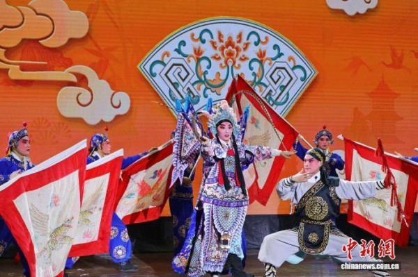 当地时间9月23日晚,“国家瑰宝·婺韵流芳”浙江婺剧团印度尼西亚雅加达专场演出举行。折子戏《吕布试马》《天女散花》《三岔口》依次登场,其中《三打白骨精》系首次在雅加达舞台亮相。婺剧俗称金华戏,流行于浙江金华及周边地区,被誉为徽戏“活化石”,2008年入选中国国家级非物质文化遗产名录。图为《吕布试马》。中新社记者 李志全 摄