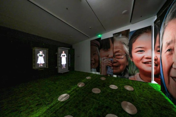 在AI生成的影像里,扎着辫子的小女孩,和头发花白的老奶奶,正一起诵读叶芝的诗歌《当你老了》。稚嫩的声音,像刚抽芽的小草,而苍老的声音,则像晒过太阳的棉絮,来自生命两端的对话交织在展厅里,时光仿佛在这里折叠,“彼时”的童年与“此刻”的晚年,都裹着对美好的向往,而美好在此达成了共鸣。