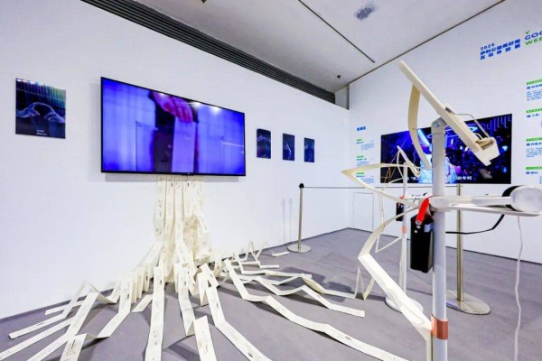 这就是艺术家何文文与黄松晟带来的作品《无声的告白》。而那些声音,则是由AI技术复原的失语儿童的“声音”,每一个字都带着孩子特有的雀跃,和纸条上的文字,以及屏幕里的手语完美重合。