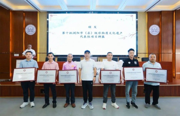讲座现场还为浏阳市新列入第十批市级非物质文化遗产的6个项目授牌,包括木模翻砂铸造技艺、客家黄酒酿造技艺、浏阳古法制香技艺等。这一环节凸显非遗作为“活态文化”的价值,呼应孔子“述而不作,信而好古”的传承精神。