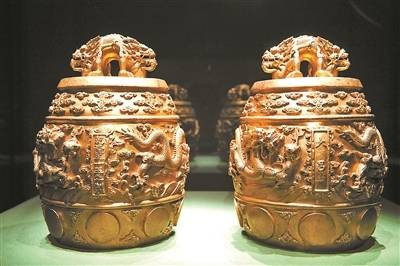 值得一提的是,展览还展出了金双龙钮云龙纹编钟(两件);另有一件大圣遗音琴,于唐至德丙申(756年)蜀地雷氏制作。此琴具有唐琴宽大圆拱、浑厚温润的典型特征。1925年,清室善后委员会点查时登记为“破琴一张”。1949年交古琴家管平湖先生精心修理,唐琴风采得以重现,至今近80年,仍灿然生辉。