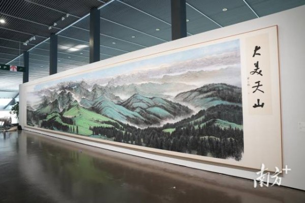 大型主题性集体创作《大美天山》长卷在“其命惟新——广东美术百年大展(2025上海)”中展出。南方+记者 仇敏业 摄