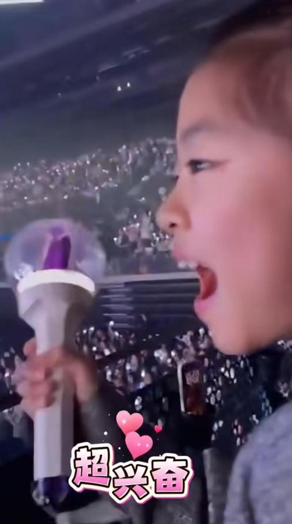 进入演唱会后,章子怡便将镜头对准女儿“醒醒”,看到偶像宋雨琦在台上表演,小姑娘显得特别激动,她手中还拿着应援物品,小嘴巴张开,应该是在跟着音乐唱歌。