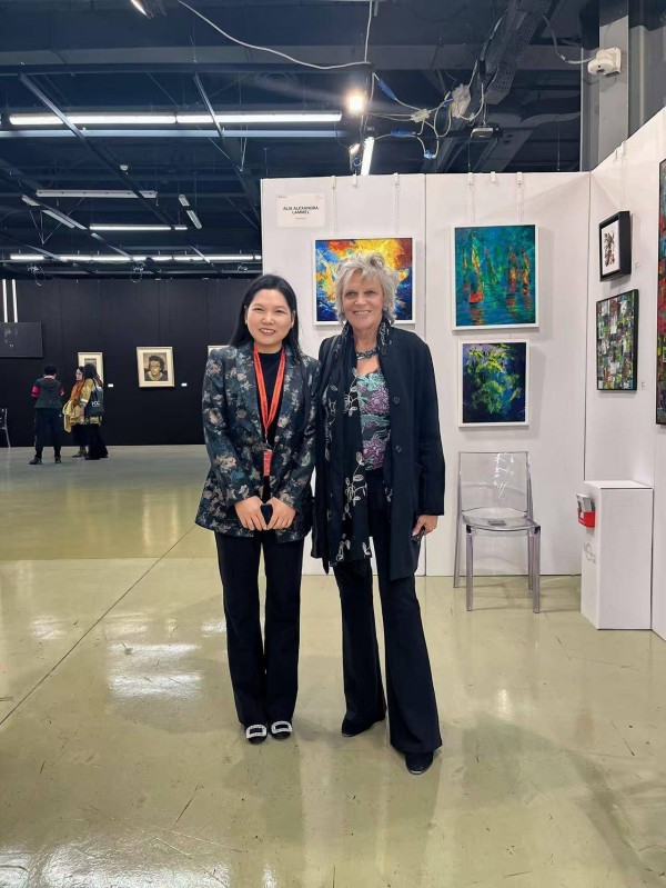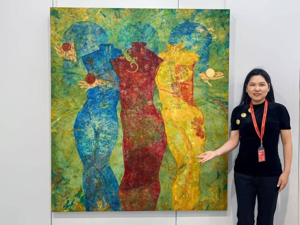 张碧云教授的作品从众多国际艺术家中脱颖而出,其创作融合中国大写意绘画的精神内涵与当代视觉语言,呼应了本届双年展对文化对话与美学共融的探讨。两幅参展作品以东方服饰与色彩为媒介,构建出历史与当代、东方与西方之间的艺术对话,更通过独特的东方视角,为全球观众理解“二元与统一”的展览主题提供了崭新的美学维度,展现出中国绘画在全球化语境下的创新表达。