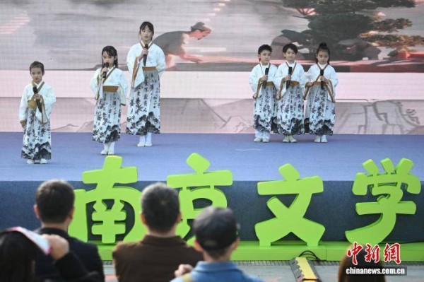 10月31日,第三届南京文学书集开幕式暨“书香润校园”全民阅读活动公益捐赠仪式在南京玄武湖畔金陵STYLE浪漫中心举行,国内80余家顶尖出版机构、20余位知名作家及教育界代表汇聚一堂,共同开启一场全民阅读盛宴。据了解,自2019年南京入选“文学之都”以来,文学书集已成为推动城市文化品牌建设的重要载体,通过“可逛、可玩、可带走”的体验,让经典阅读融入百姓日常生活。图为孩子们在开幕式表演节目。中新社记者 泱波 摄