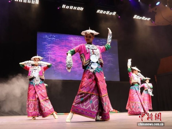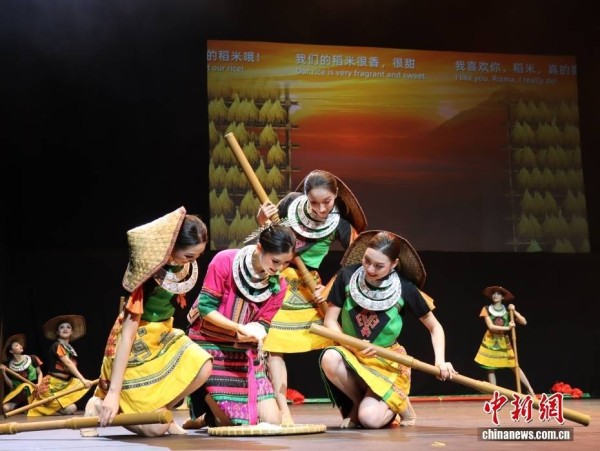 当地时间11月1日,由海口市艺术团打造的专场演出舞蹈诗《黎族家园》在澳大利亚悉尼歌剧院上演。中新社记者 薄雯雯 摄