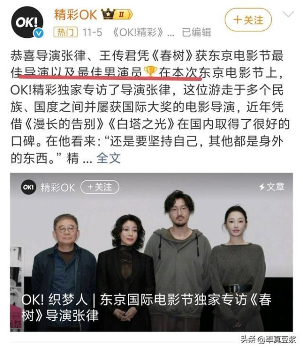 但是反转来得太快:第二天《春树》狂揽最佳导演+最佳男主,白百何却连庆功宴的门都摸不着。