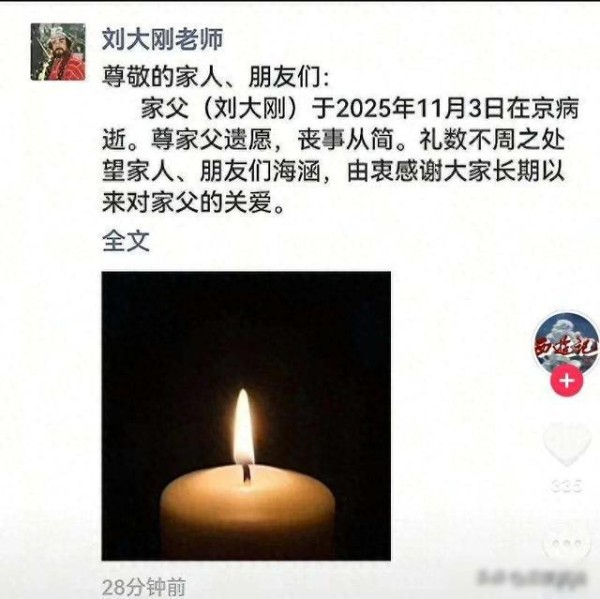 北京的冬天刚到,刘大刚老师就离开了,他七十八岁,病得不重,走得安静,儿子在朋友圈说丧事从简,不麻烦大家,可我们都知道,去年央视办的那场西游记重聚,他在台上还举着降魔杵笑,那是他们最后一次集体露面,现在回想起来,那笑容那么真实,又那么遥远。