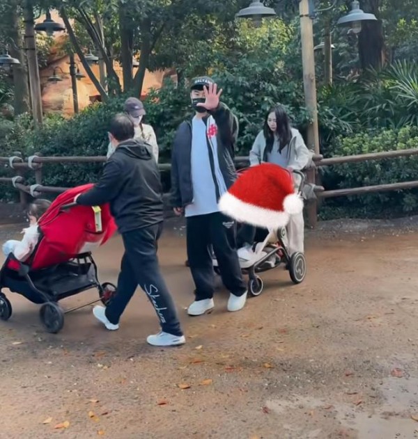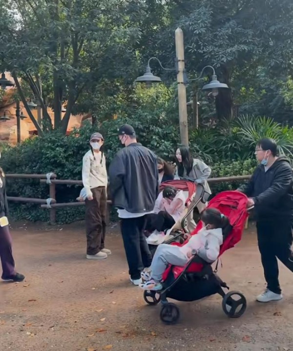 当时陈赫正背对着网友,两个小朋友也坐在婴儿车中被推着,毕竟小朋友年龄不大走太久肯定会很累的。