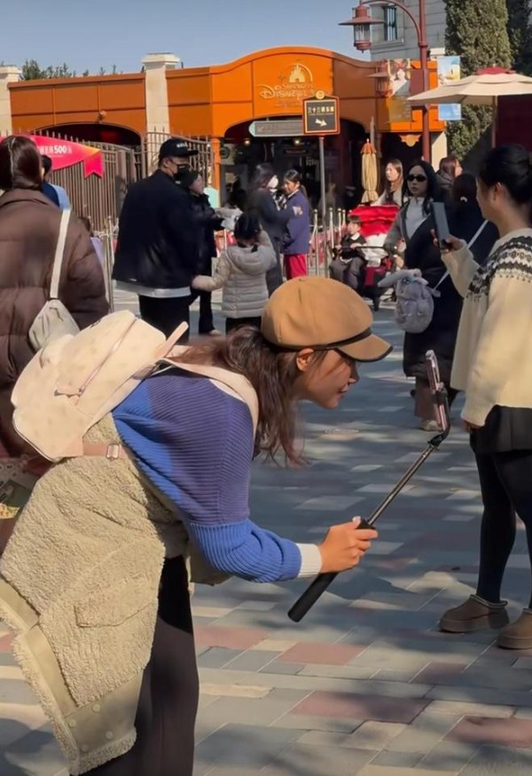 另外一位网友也分享在上海迪士尼游乐园偶遇陈赫与其家人的画面,并拿起手机拍摄。