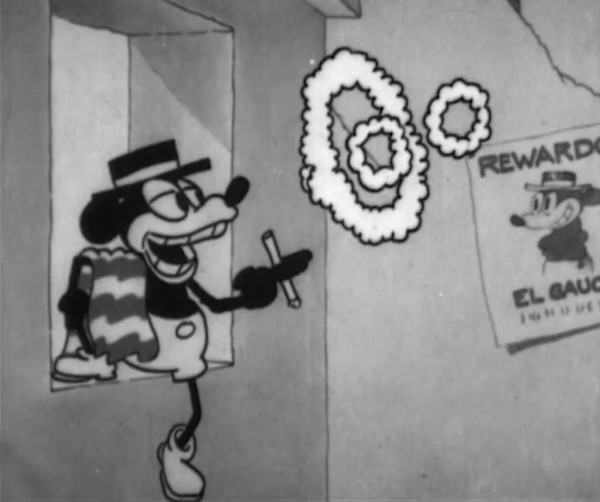 1928年米奇系列第二部动画《飞奔的高乔人》中抽烟的米老鼠形象