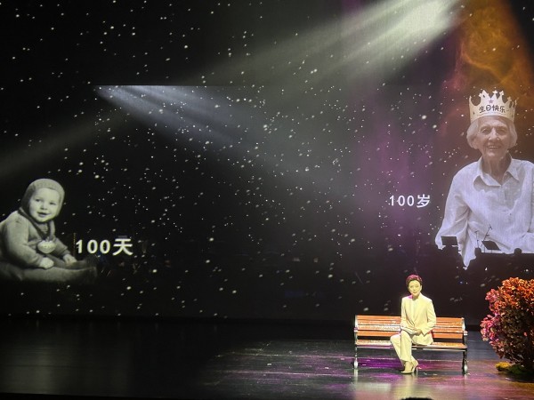 《伊莎白》全剧分为《生在中国》《爱在中国》《心在中国》《留在中国》四幕,凝练而深情地讲述了伊莎白与中国命运同频共振的生命故事。在艺术形式上,《伊莎白》巧妙融合四川清音、湖北大鼓、京韵大鼓、陕北说书、四川评书、四川扬琴、四川金钱板、长子鼓书、苏州评弹、评话、快板书、单弦等12种曲艺形式。在舞台呈现上,《伊莎白》构建出层次丰富的艺术空间,颇具巧思地将舞台分成了五个区:曲艺演唱区、交响乐队伴奏区、主持人阅读串联区、大屏幕影像呈现区、台纱幕影像呈现区。