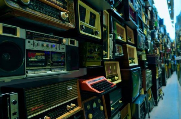 熊建华的旧物收藏始于八十年代初,这些物件包括收音机、收录机、黑白电视机、闹钟座钟、书刊报刊、昆明老街物件、石器、通讯设备、铁皮箱包、生活用品等等。这些物件大多是从别处回购,也有不少源于朋友捐赠。慢慢的,熊建华这里就成了一座微型的旧物博物馆。不同于专业电器收藏聚焦技术史、设计史,熊建华的收藏多是基于个人志趣,数量庞大、品类复杂,它们大多是改革开放之前生活中的稀缺物。这些收音机、收录机、电视机以及文艺刊物极大丰富了熊建华的精神世界。对于不能像常人那样轻易参与到文化生活现场的熊建华而言,这些收集来的物件构建出一个属于他自己的文化世界。