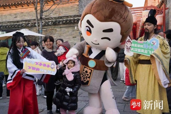 元旦假期里,徐州街头游人如织。各种文创IP纷纷走上街头,和游客们亲密互动。其中,去年11月,在上海“中国在地吉祥物大赛暨在地文创IP萌趣赛”上,拿下“最具文化特色力奖”的徐州本土文创IP“刘小邦”,成为了各个人流密集区里最靓的仔,游客们争相与他互动合影。