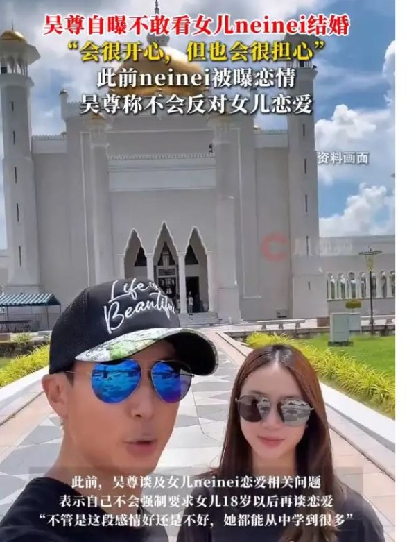 此前,吴尊谈及女儿neinei恋爱相关问题,表示自己不会强制要求女儿18岁以后再谈恋爱,“不管是这段感情好还是不好,她都能从中学到很多”。吴欣怡,小名NeiNei,2010年10月10日出生于文莱,是艺人吴尊的女儿。她因2014年与父亲吴尊一同参加浙江卫视亲子综艺节目《爸爸回来了第一季》而受到关注。
