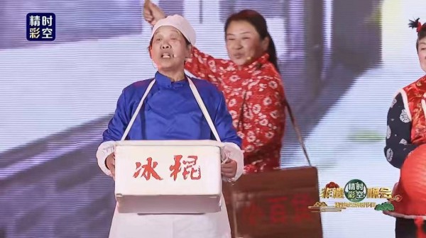 晚会上,郑光荣带领团队带来的群像式叫卖表演,将市井生活的鲜活图景原汁原味地搬上了舞台。团员们分工协作,有人手持拨浪鼓脆声喊着“卖针头线脑嘞”,有人肩扛道具吆喝“收旧货嘞”,还有人模仿小贩沿街叫卖“冰棍儿嘞——败火的冰棍儿!”“茄子黄瓜加扁豆,还有辣青椒儿嘞!”“卖药糖嘞——润肺止咳的药糖!”“卖报嘞——新鲜出炉的报纸!”“酸梅汤嘞——冰镇的酸梅汤!”,一呼一应间,仿佛整条老街的烟火气都被搬到了晚会现场。观众不仅听到了地道的吆喝腔调,更看到了藏在声音背后的生活场景:那是手艺人走街串巷的坚韧,是街坊邻里闻声搭话的温暖,是酷暑里听到“败火的冰棍儿”“冰镇酸梅汤”吆喝时的清爽惬意,是市集上叫卖“茄子黄瓜加扁豆”时的新鲜质朴,是药糖的醇厚、报纸的油墨香交织出的市井百态,是属于中国人独有的市井浪漫。而这份默契的配合,离不开郑光荣作为团长的悉心打磨——为了还原最真实的叫卖场景,这位同时身为中国非遗传承人数据库认证传承人、中国非物质文化遗产记录工程入选传承人的守艺人,带领团员们查阅史料、走访老艺人,反复推敲每一句吆喝的调门、每一个动作的细节,更牵头建成国内首个“吆喝叫卖声景数据库”,为技艺传承留存珍贵声学标本,力求让观众感受到非遗技艺最本真的魅力。
