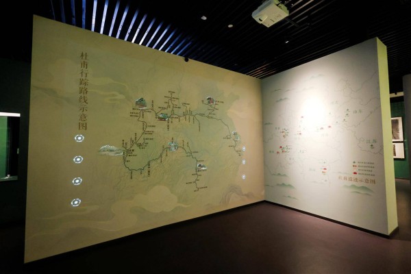 展览分为“游学壮歌”“困守长安”“度陇赴蜀”“漂泊西南”四个部分,展现杜甫坎坷艰辛的人生经历和“由凡入圣”的心路历程,以及后世对其人其诗的集体文化记忆与思想精神的认同和传承。