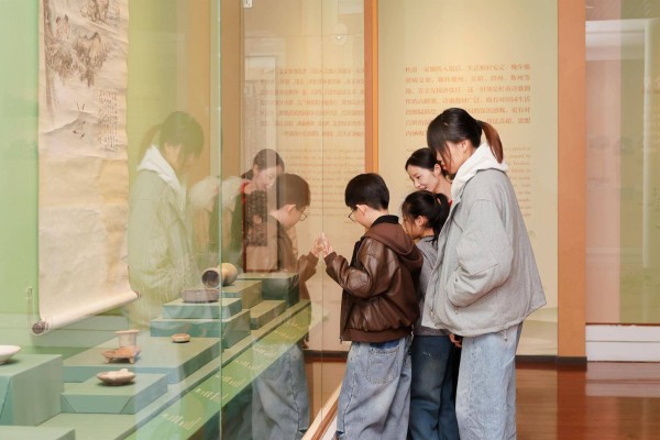 第一单元“游学壮歌”聚焦青年杜甫“吴越漫游”“放荡齐赵”的青春壮游时光,展现其裘马轻狂、志存高远的精神风采。观众能够看到他在吴越、梁宋、齐赵等地漫游留下的踪迹,还有青釉瓷堆塑罐、玉璧底形瓷碗等“类玉似冰”的唐代越窑青瓷器,“虎丘剑池”拓片以及潘天寿《望岳》图轴等,以此再现诗人早期的豪情壮志与广阔视野。