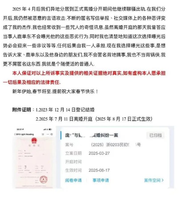 领证6天就家暴,出轨!短剧顶流鹿单东被前妻长文爆料