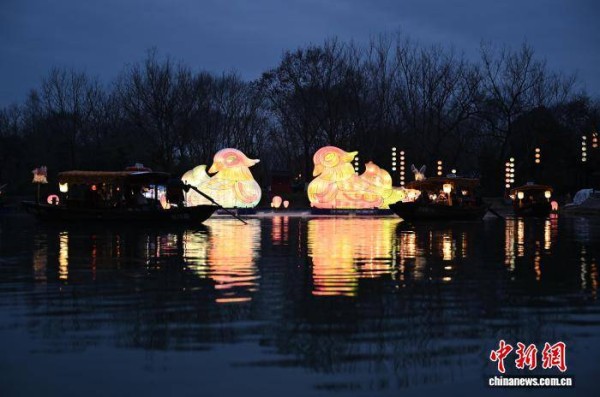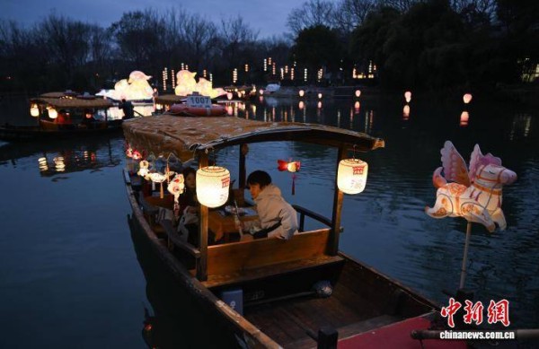 (新春见闻)千盏花灯点亮水乡夜色 杭州西溪灯会令人流连