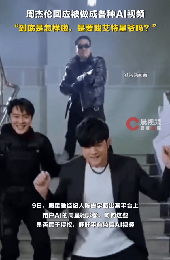 与此同时,周星驰方面也对AI视频现象发声。9日,其经纪人陈震宇晒出某平台用户利用AI生成的周星驰影像,并质疑此举是否构成侵权,呼吁平台对相关AI视频内容加强监管。
