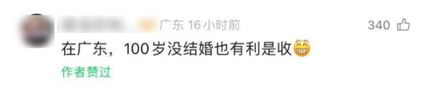 网友纷纷在评论区表示:在广东,100岁没结婚都有利是收。