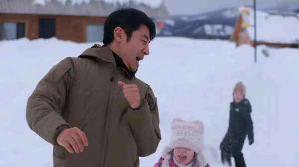 撒贝宁则侧身护住女儿,巧妙引导她避开密集人流,途中不忘抬手帮李白理顺被冷风拂乱的额前碎发。