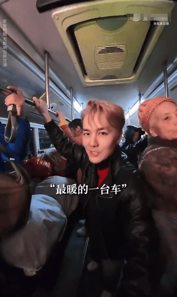吴克群在视频中说:“这是我见过最暖的一台车,明明是公交车却没有地方下脚,满车都是蔬菜。司机却还说‘你们不运货的就不能上’……”