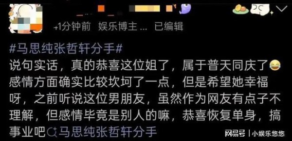 马思纯官宣分手,为什么全网都在恭喜?网友曝马思纯张曼乐去年6月已分手