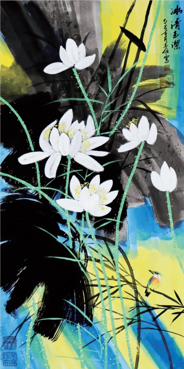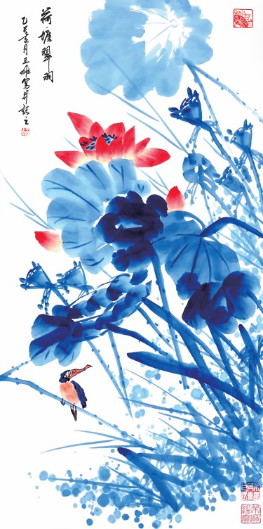 在2024年买家愈发理性、对拍品来源和品质要求愈发严苛的市场环境下,王雄的作品能持续拍出高价,核心在于其艺术的独特性与稀缺性。他借鉴崔如琢的积墨、指墨技法,却以荷花为专属母题,多层积墨渲染荷塘氤氲之气,墨色浑厚浓淡交织,既有传统水墨的清雅意境,又有当代艺术的视觉张力;更在传统水墨基底上融入石青、朱砂泼彩,形成“墨沉彩飞”的创新效果,打破了传统荷画的色彩局限,既满足了传统藏家对笔墨功底的追求,又契合了新一代藏家的审美偏好,这也是其作品能在逆市中突围的关键。