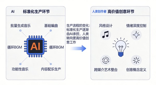 AI正在重塑商业音乐工作流在商用音乐领域,AI已经开始对传统生产模式产生冲击。