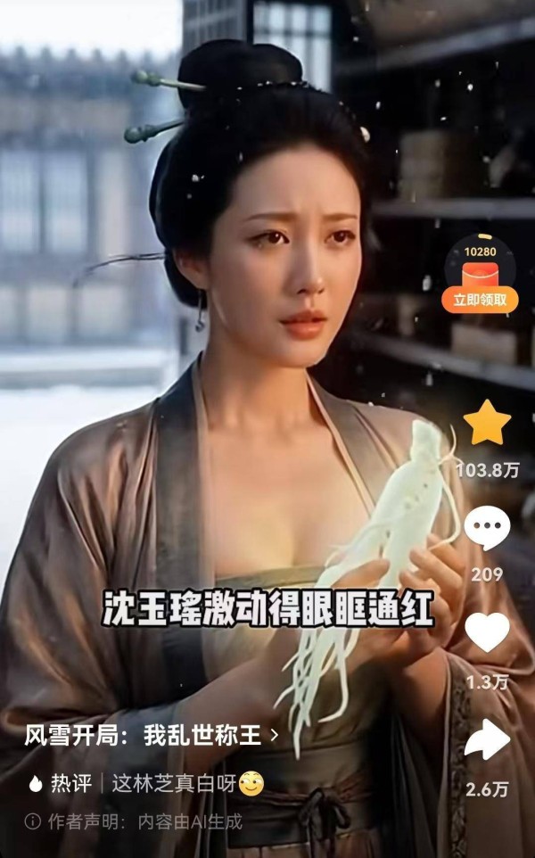 “短剧下沉市场受众多,他们不太在意画面质感、真假,只要万军压境、星际战争、仙侠云海的爽感就行了。这些宏大场面,真人剧很难实现,要烧钱、烧道具做特效,用AI只要动动手指。”艺娜说。