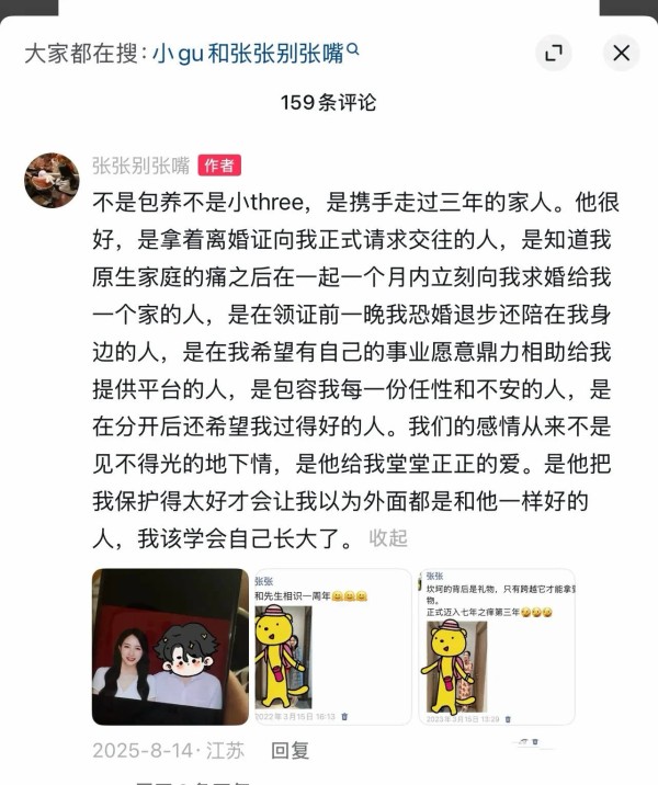 对于外界传说的三姐,张梦婷是不认可的。只是他们认识的时机不太好,热恋中的时候张雪峰父亲去世了,为了守孝婚事只能搁浅。