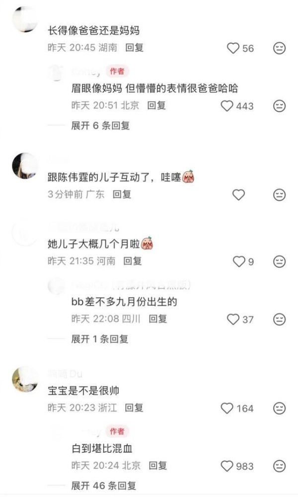 据悉,何穗和陈伟霆的宝宝去年9月出生,10月的时候两人官宣得子,并晒出抱娃照片。