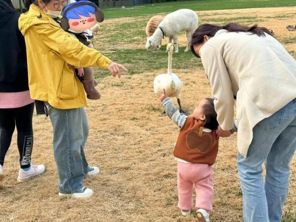 网友的宝宝因为跟何穗的宝宝年龄相近,主动过去跟他打招呼,保姆带着何穗宝宝热情回应。网友还透露了宝宝的长相,表示模样像妈妈,但懵懵的表情像爸爸。