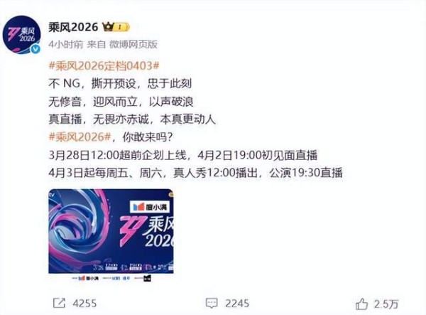 《乘风2026》敢这么玩,无疑是一股清流,也让大家对这档节目多了更多期待,就等4月2日的初见面直播,看33位姐姐正式集结启航。