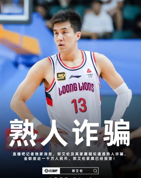 参考资料:央视新闻 CBA球员郭艾伦被诈骗近千万 警方已立案