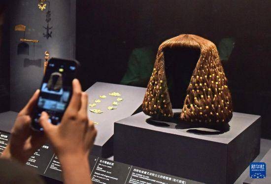 4月14日,媒体记者在拍摄一款头饰作品。
