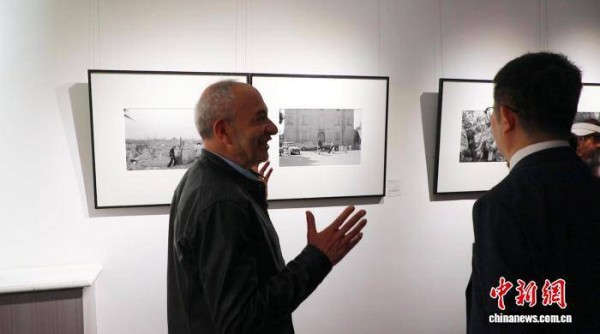 4月23日,意大利“镜像错时”摄影展巡展,在内蒙古自治区呼和浩特市正式开展。展览汇集意大利知名艺术家奥利沃·巴尔别里和安德烈·卡瓦祖蒂的经典摄影作品,全景展现中国与意大利两国岁月更迭、发展成就与时代风貌,用无国界的光影语言,拉近两国民众距离。本次展览为期一个月,自4月23日起至5月23日止,面向全体市民免费开放。图为开幕式上安德烈·卡瓦祖蒂介绍自己的摄影作品。中新网记者 陈峰 摄