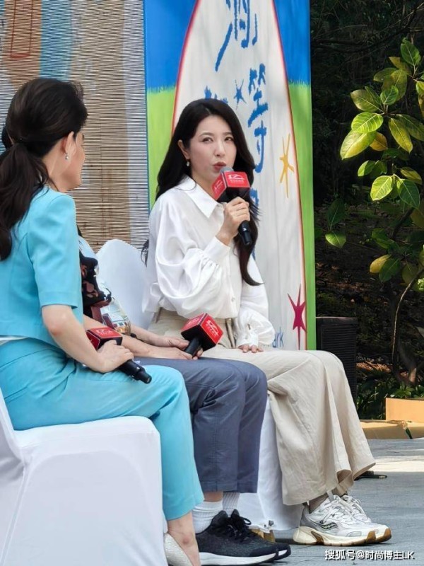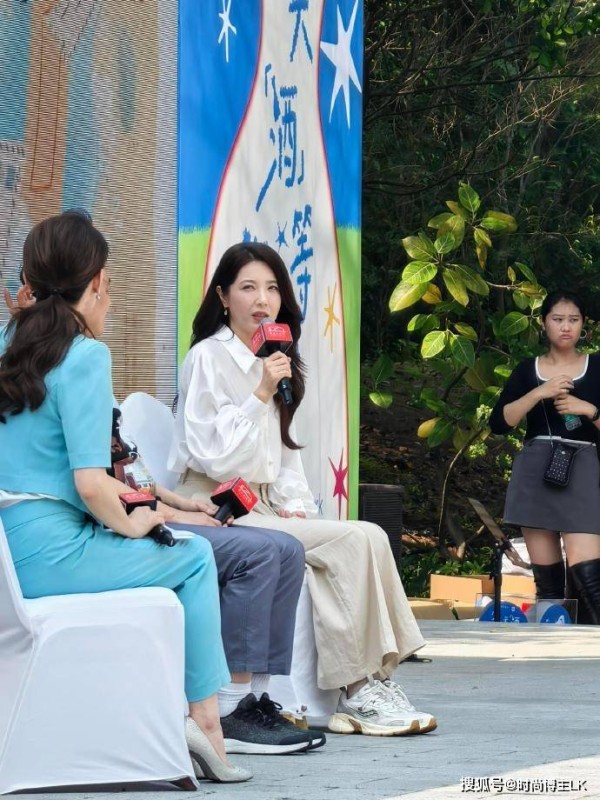 还是一如既往的微卷长发,上半身穿着一件纯白缎面衬衫,下面配了条米色天丝亚麻阔腿裤,坐在那儿就看着亭亭玉立的,气质太突出了。